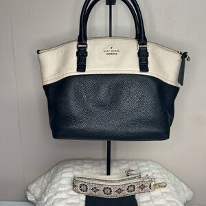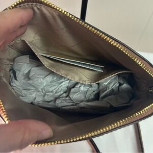 Chic Michael Kors crossbody bag. Sleek design with gold accents. Perfect for everyday use.