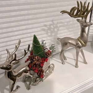 Metal / Standing Deers / W / Wreath / 2 pc / Centerpiece / Christmas / Add a touch of elegance to your holiday decor with these stunning silver and gold reindeer figurines. Perfect for creating a festive atmosphere.