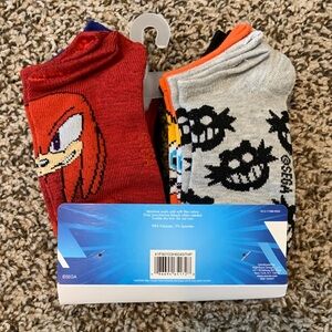 Colorful no-show socks featuring Sonic and Shadow designs. Perfect for fans of the iconic game.