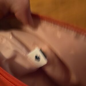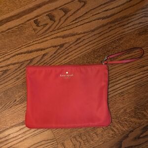 Kate Spade nylon clutch. 10.5 x 8 inches. Loop zipper pull. Jaccard inside print. Salmon color