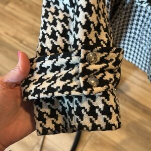 Chic houndstooth pattern. Double-breasted design. Belted waist for a tailored fit. Great condition. Fully lined.