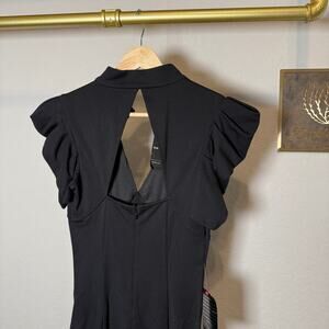Women's Bebe Black Ruffle Sleeve Keyhole Back Sheath Dress Size XS NEW