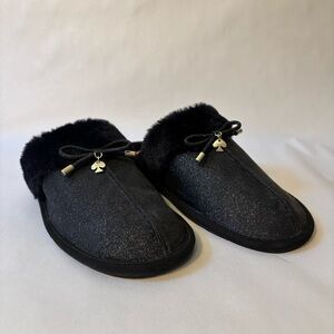 Kate Spade Black Faux Fur Glitter Slippers Size 9B