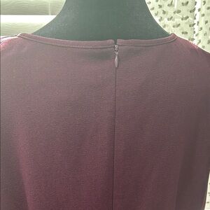Chic plum dress with cascading ruffles. Perfect for elegant events.