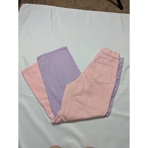 Shekou Two Tone Split Pink Purple High Rise Denim Jeans KPop Wide Leg Size S 24