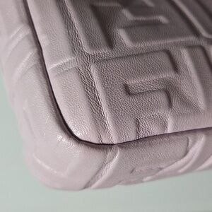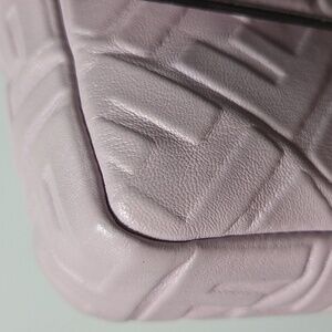 Chic Fendi leather shoulder bag in pastel purple. Features signature logo pattern and gold-tone hardware. Perfect for stylish outings. Comes with 2 attachable straps, as pictured.