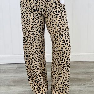 Chic wide-leg pants with bold leopard print. Perfect for a stylish look.