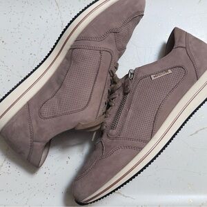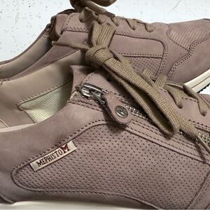 Mephisto Leenie Sneaker Light Taupe Nubuck Neutral Leather Lace Up Zipper 8.5