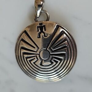 Hopi sterling silver "Man in the Maze" vintage pendant.
