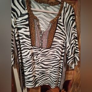 Chic blouse with colorful floral embroidery. This tunic has beautiful embroidery around the collar..all the way down the side and all around the bottom...its beautiful. Too Large for me the only reason I am selling..it needs a new home and to be worn!Ideal for a stylish look. Very good condition.