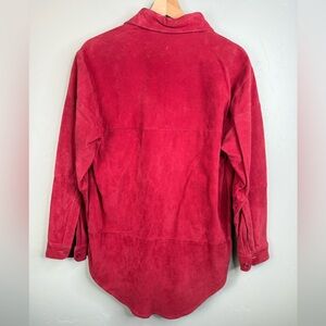 Red leather shirt, vintage button-down Wilson leather Shacket. Sueded red leather, 100% leather from the 90s or 80s.