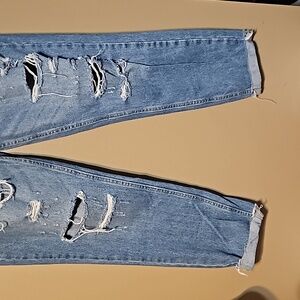 Free People/We The Free high-rise distressed buttonfly jeans with a raw hem. Trendy and stylish, perfect for any casual outing. Gently worn. No stains.