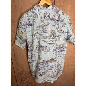 Saks Fifth Avenue Tori Richard Blue Beach Button Down Aloha Shirt Men Size L