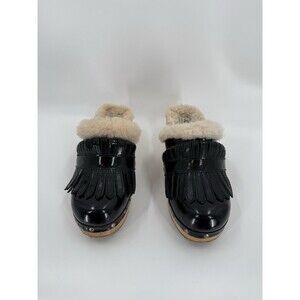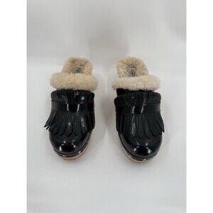 UGG Black Patent Leather Kiltie Clog With Detatchable Fringe Size 7 Rare