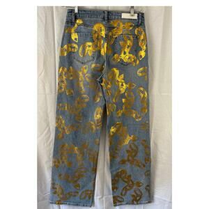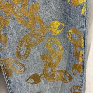 Pair these graphic jeans with a mock neck top and booties to complete your look. These jeans are in good used condition and ready for a new home.