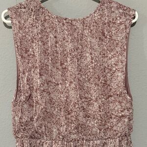 Chic mauve maxi dress with floral pattern. Sleeveless design. Perfect for casual outings. Front button. Lined. Length approx 55 inches.