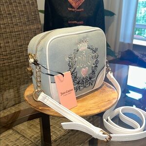 Juicy Couture Light Washed Blue Denim and White Heritage Crossbody Bag