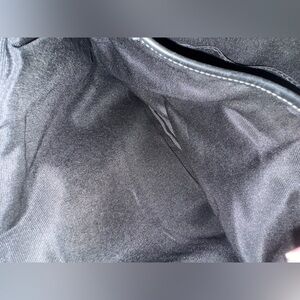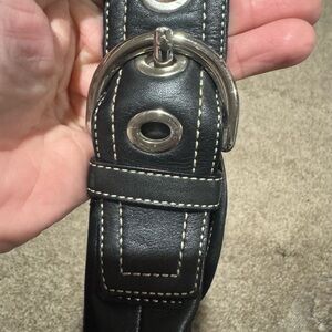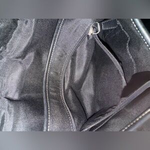 Sleek black leather with silver buckle. Stylish and functional design. Very well maintained, no rips, tears or stains inside. Smoke free & pet free.
