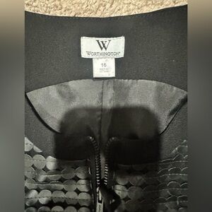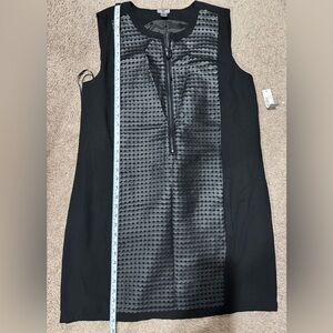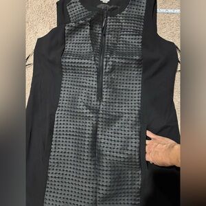 Chic black dress with a stylish textured front, has pockets and is lined. Ideal for versatile wear. Smoke free & pet free