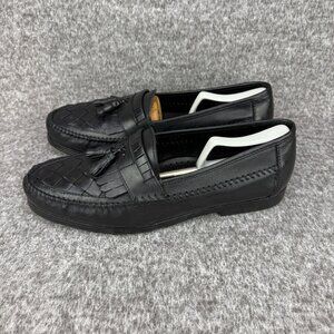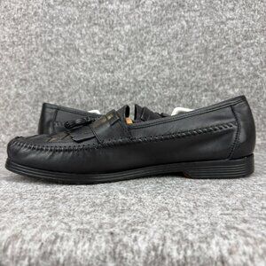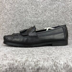 ✅Earth Shoe Mens 13 Alan II Black Leather Tassel Kilti Slip-On Moc Toe Loafers