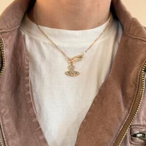 y2k 2000s vintage retro style rose gold iced out planet chain necklace