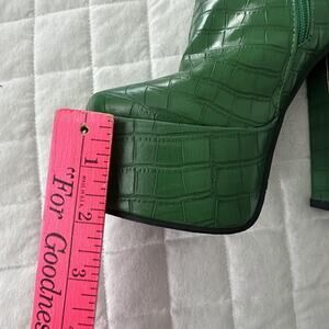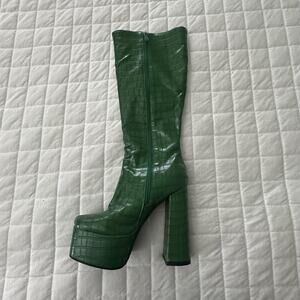 JINGPIN Womens Platform Boots 36 Green Faux Crocodile High Block Heel US 6 Glam