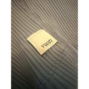 Women M Vuori VW189 Blue Rib Crop Tank Top Built-In Bra Stretch Knit Sports