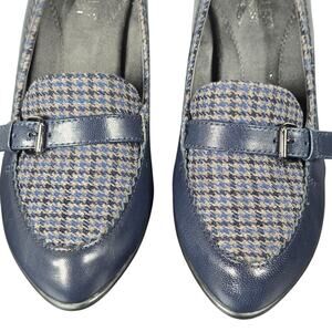 Aerosoles Pumps Women 7.5 Aperture Heels Navy Leather Houndstooth Plaid Buckle