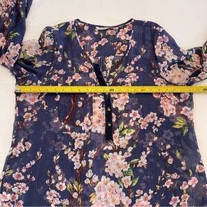 Soft Surroundings Adele Cherry Blossom Tunic Top V-Neck Long Sleeve Navy Blue