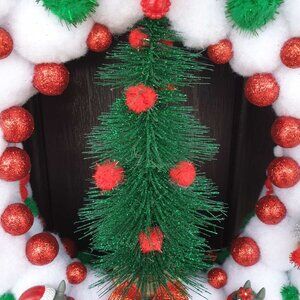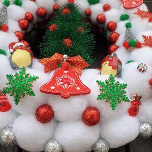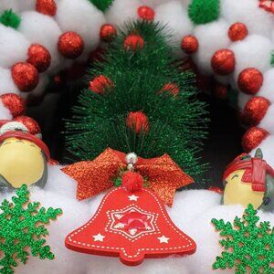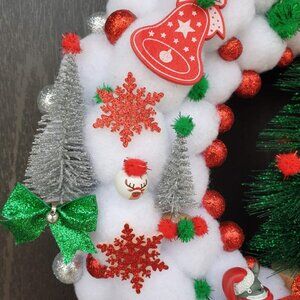 Handmade Totoro Santa with Christmas Tree pom pom wreath with red , green and silver classic holiday colors embellishment for your Holidays home decor .This Totoro decor is perfect for your door, wall or your office, and your friend's and family would love it as a gift .Perfect decor for all Ghibli fans .They are so adorable and will make your door and wall stand out .