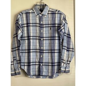(2) Ralph Lauren long sleeve blue and white plaid shirt - button-down collar - 100% cotton - size 8/10