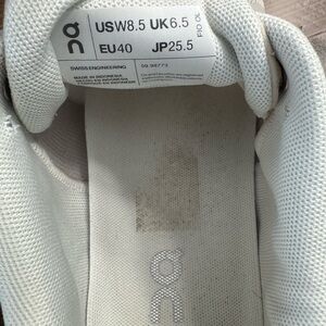 On Running Women’s Cloud 5. Snip is of the newer version. Excellent condition, only worn a handful of times. Size 8.5, color is pearl (off white/cream)