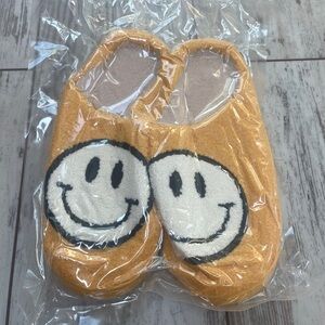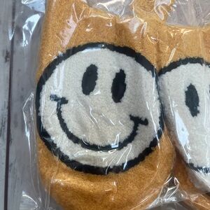Happy face slippers, NIP women’s slippers, cozy plush slippers, memory foam house shoes, fuzzy indoor slippers, kawaii yellow slippers, retro smiley face slippers, non-slip TPR sole, soft warm slippers, winter lounge shoes, gift slippers for women, US size 9 9.5 slippers, cute indoor footwear, comfy fuzzy slippers, pull-on cozy shoes