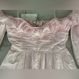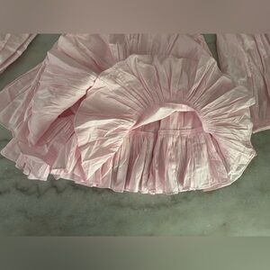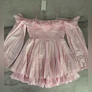 Off shoulder design with ruffled detailing and elasticized cuffs