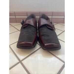 Stacy Adams Men's 9M Brown Leather & Mesh Monk Strap Dress Shoes Square Toe