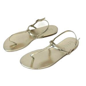Nicole Miller Gold Sandals Flat Thin Straps Buckle Size 7.5 Summer Beach