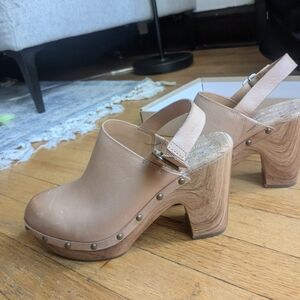these gorgeous clogs are a reposh. nothing wrong with them, I just wore them for one event. in wonderful condition, I would say fit true to size. Reasonable offers welcome! 😊