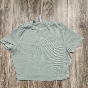 Gap Puff Sleeve Green Velvet Relaxed Split Neck Top Size Large