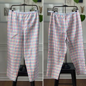 Tag size 3, which in towards proprietary sizing is roughly equivalent to a US size 3X. Laying flat measures 23 inches shoulder to him, 19 inches across the elastic waist and 41 inches shoulder to ham as the adjustable straps are set.