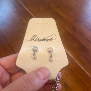 Elegant Silver Necklace with Iridescent Accents and matching earrings. NEW