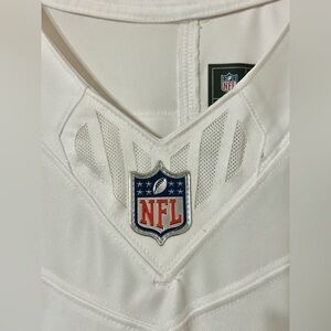 Classic NFL jersey in white with striking blue details. Ideal for fans and casual outings. Standard Fit: Not too loose or tight over the body. If you are in between sizes, consider sizing up for a roomier fit.