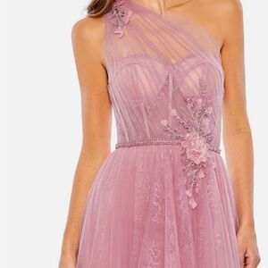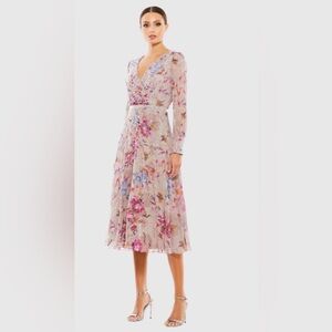 Chic midi dress with layered ruffles. Perfect for elegant occasions. Standout style by Mac Duggal.