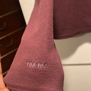 Stylish maroon pullover with gray side panels. Features a convenient half-zip design.