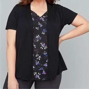 Excellent pre- owned condition. Navy with white & pink floral print. Crinkle flyaway kimono. Button cuff detail. 100% rayon. Hand wash.