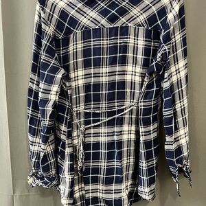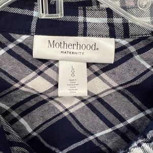 Chic plaid shirt with button-up design. Features a classic collar. Tie in the back to accentuate your cute pregnant belly. Motherhood Maternity Brand