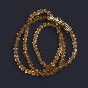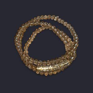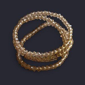 Gold Colored Clear Beads Wrap Bracelet with Rhinestone Gold Colored Long Charm Fashion Jewelry