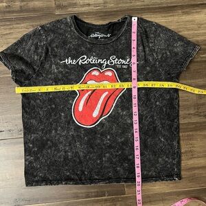Ladies cropped shirt sleeve black Rolling Stones concert t shirt.