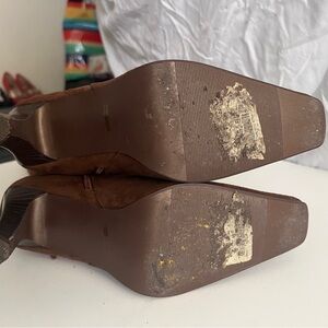 Women’s Brown Suede Fringe Boots – Size 7.5, 3” Heel