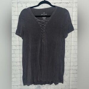 American Eagle Soft & Sexy Lace-Up Gray T-Shirt Womens Casual Top