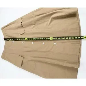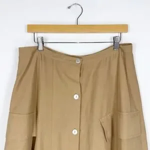 Vince Women's Utility Linen Cotton Blend Midi Skirt Size 12 Sandstorm Tan